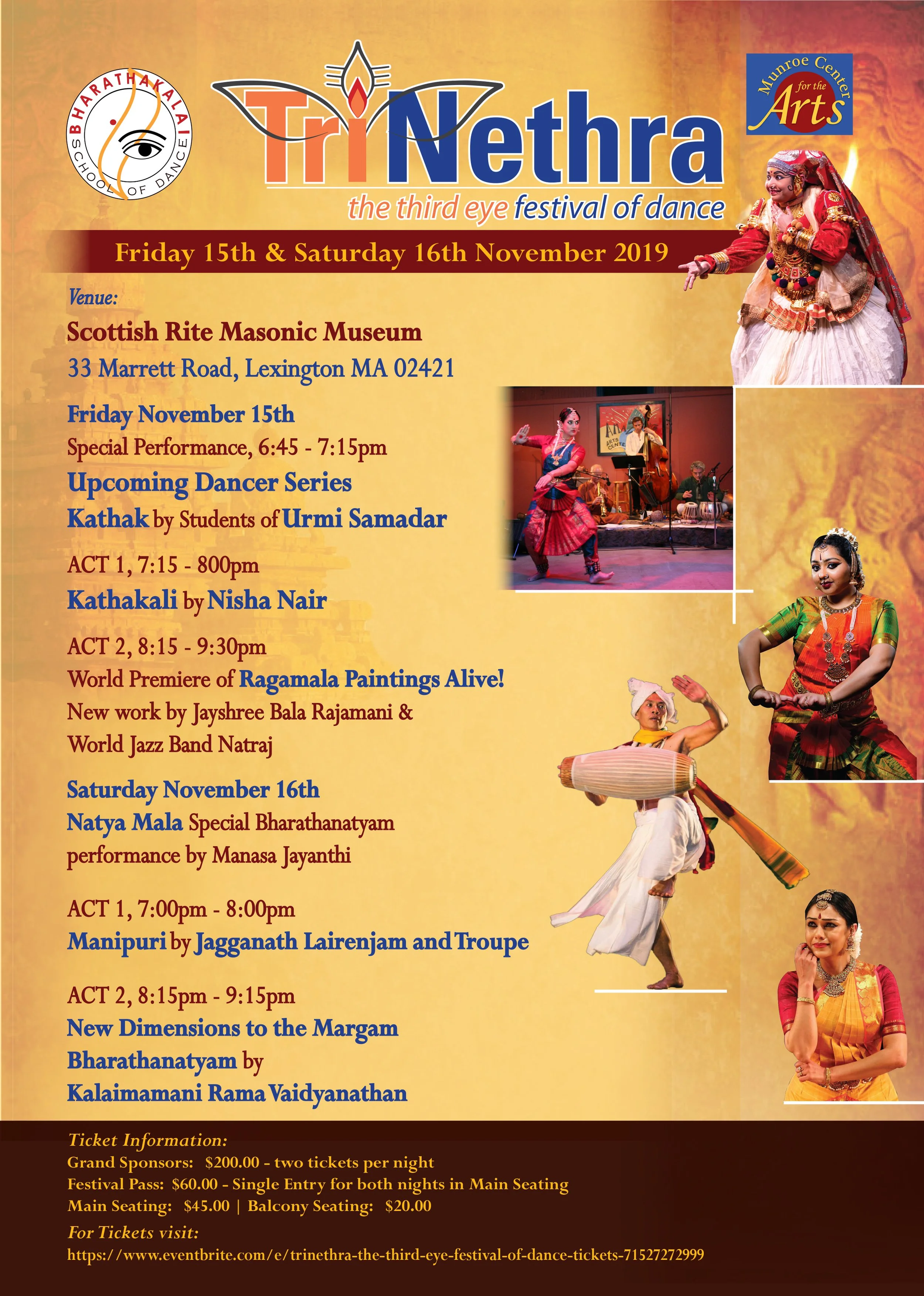 Founded in 2015 by renowned dancer and choreographer Jayshree Bala Rajamani, TriNethra – The Third Eye Festival of Dance seeks to promote and preserve the rich classical dance traditions of India. Its very name reflects its vision — to open the audience’s “third eye” to the beauty, depth, and spiritual resonance of Indian dance.
