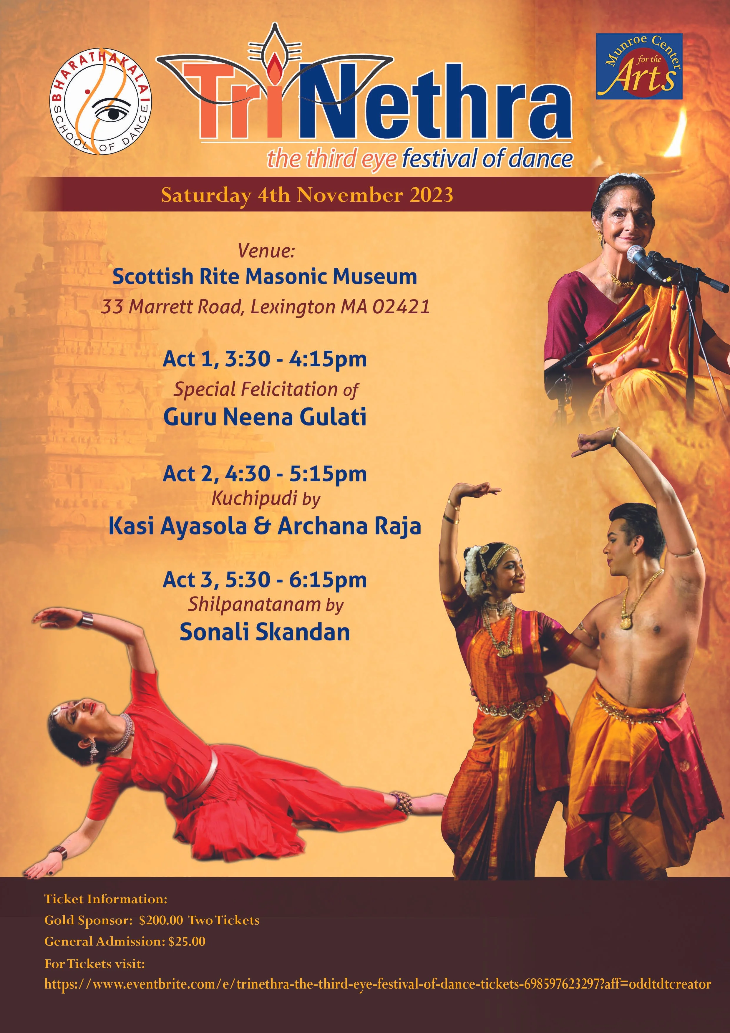Honored as a recipient of the Mass Cultural Council Festival Award for multiple years, TriNethra is New England’s oldest and most celebrated classical Indian dance festival. With each edition, it deepens the shared experience between dancer and audience — a moment of collective joy, inspiration, and awakening.